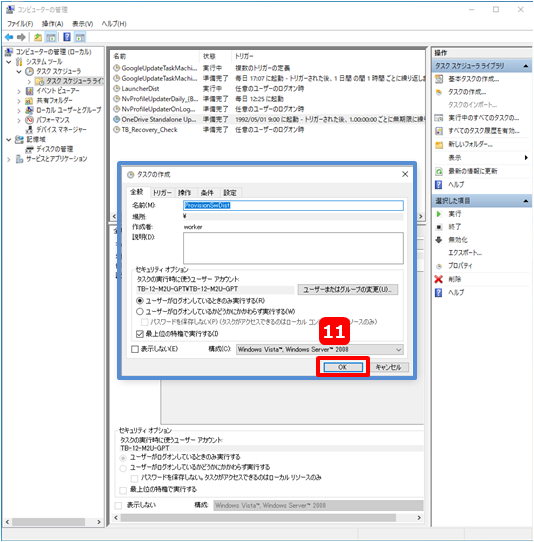 【8】.「タスクの作成」というウィンドウが表示されますので「11) OK」をクリックします。