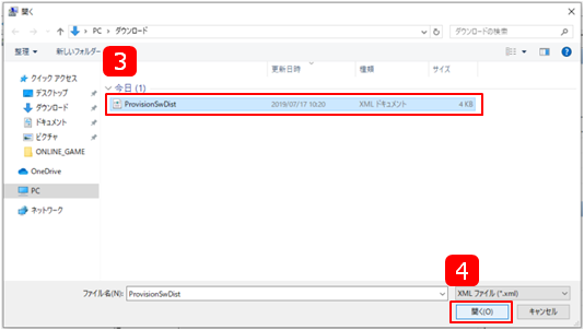 【2】.「3) ProvisionSwDist」をクリックし、「4) 開く」をクリックします。