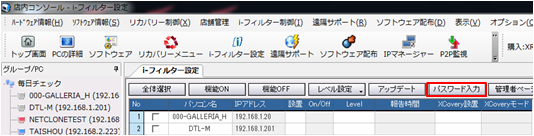 店内コンソールにログイン > i-フィルター設定 > パスワード入力
