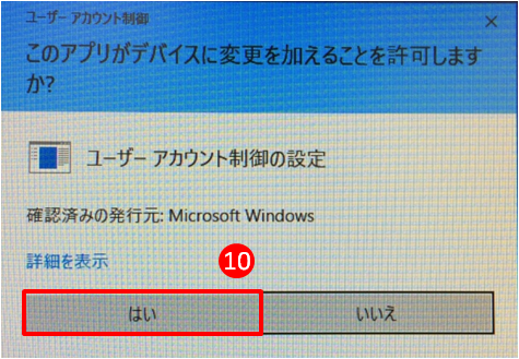 ⑩.「はい」をクリックします。