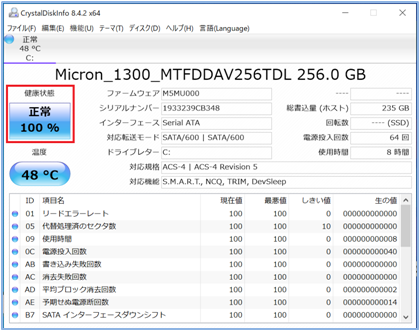 ①. 以下サイト等を参考に HDD / SSD が、物理的に破損していないか健康状態を確認します。