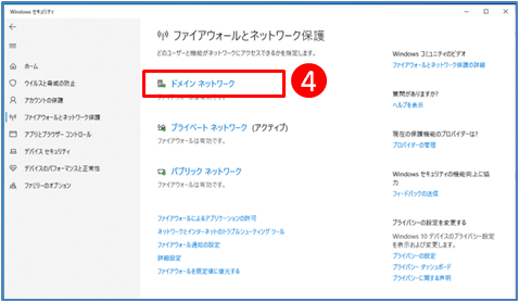 ⑥.「ファイアウォールとネットワークの保護」をクリックします。