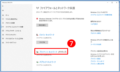 ⑨.「ファイアウォールとネットワークの保護」をクリックします。