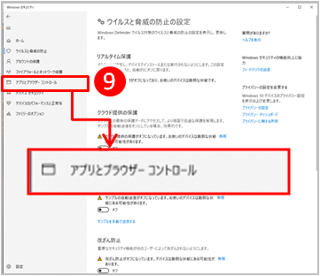 ⑨.「アプリとブラウザーコントロール」をクリックします。